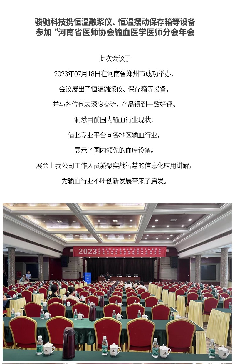新聞 | 駿馳攜設備參加河南省醫師協會輸血醫學醫師分會年會